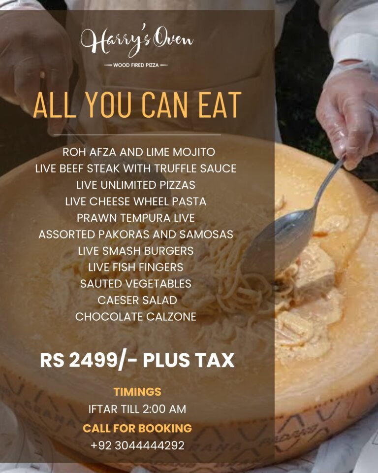 One of the hottest pizza places in Lahore, Harry’s Oven is filled with a rustic, hearty vibe coupled with two highlights; brick oven pizza and cheese wheel pasta. The café prides itself on serving quality food and being the first in Lahore to bring standout international trends to the local restaurant scene.